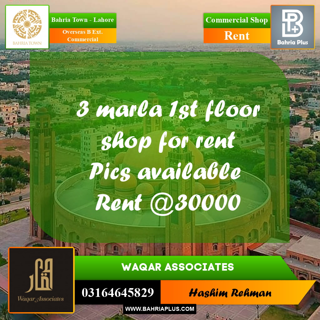 3 Marla Commercial Shop for Rent in Overseas B Ext. Commercial - Bahria Town, Lahore - (BP-243585)