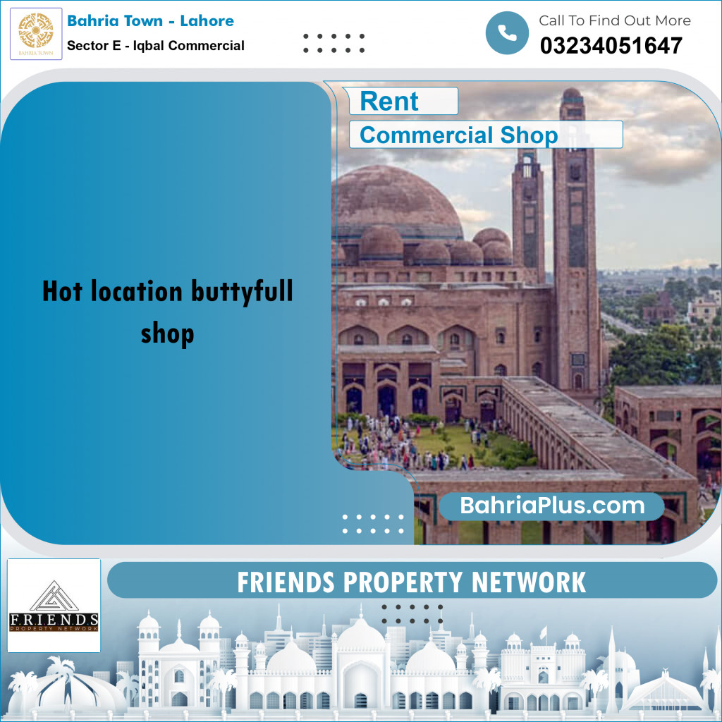 Commercial Shop for Rent in Sector E - Iqbal Commercial - Bahria Town, Lahore - (BP-302837)