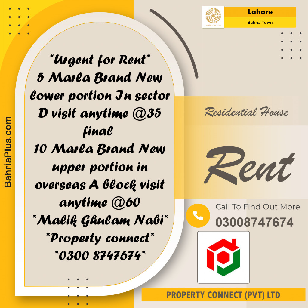 Residential House for Rent in Bahria Town, Lahore - (BP-258332)