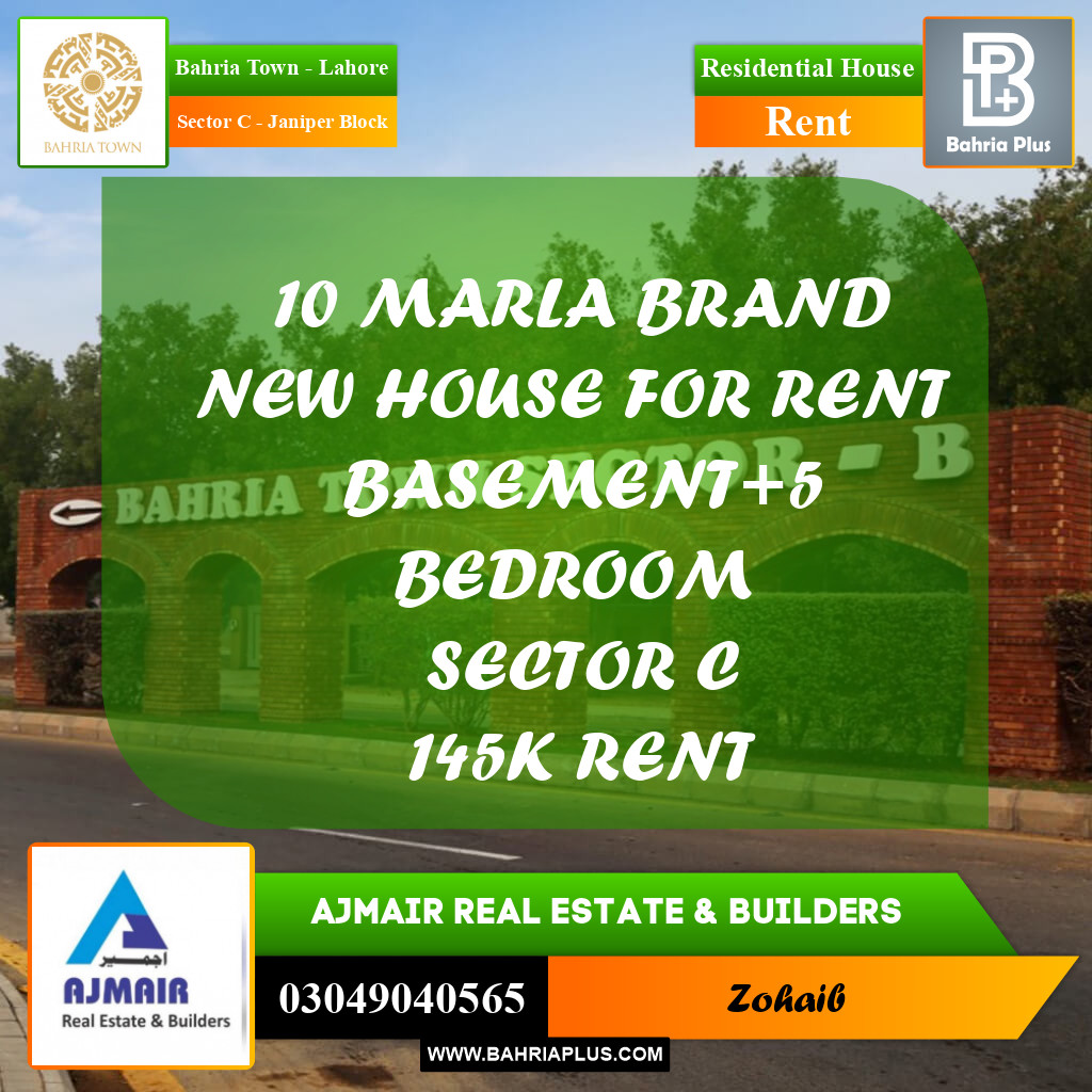 10 Marla Residential House for Rent in Sector C - Janiper Block - Bahria Town, Lahore - (BP-261407)