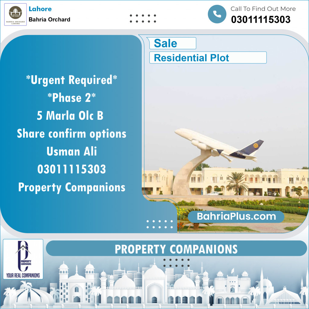 Residential Plot for Sale in OLC-B Block - Bahria Orchard, Lahore - (BP-146194)