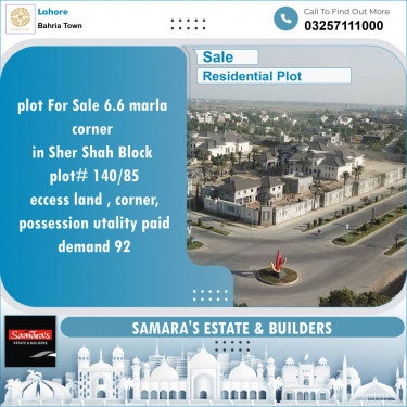 plot For Sale 6.6 marla corner in Sher Shah Block plot# 140/85 eccess land ,...