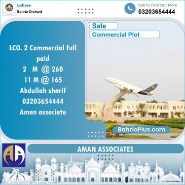 LCO. 2 Commercial full paid 2 M @ 260 11 M @ 165 Abdullah sharif 03203654444...